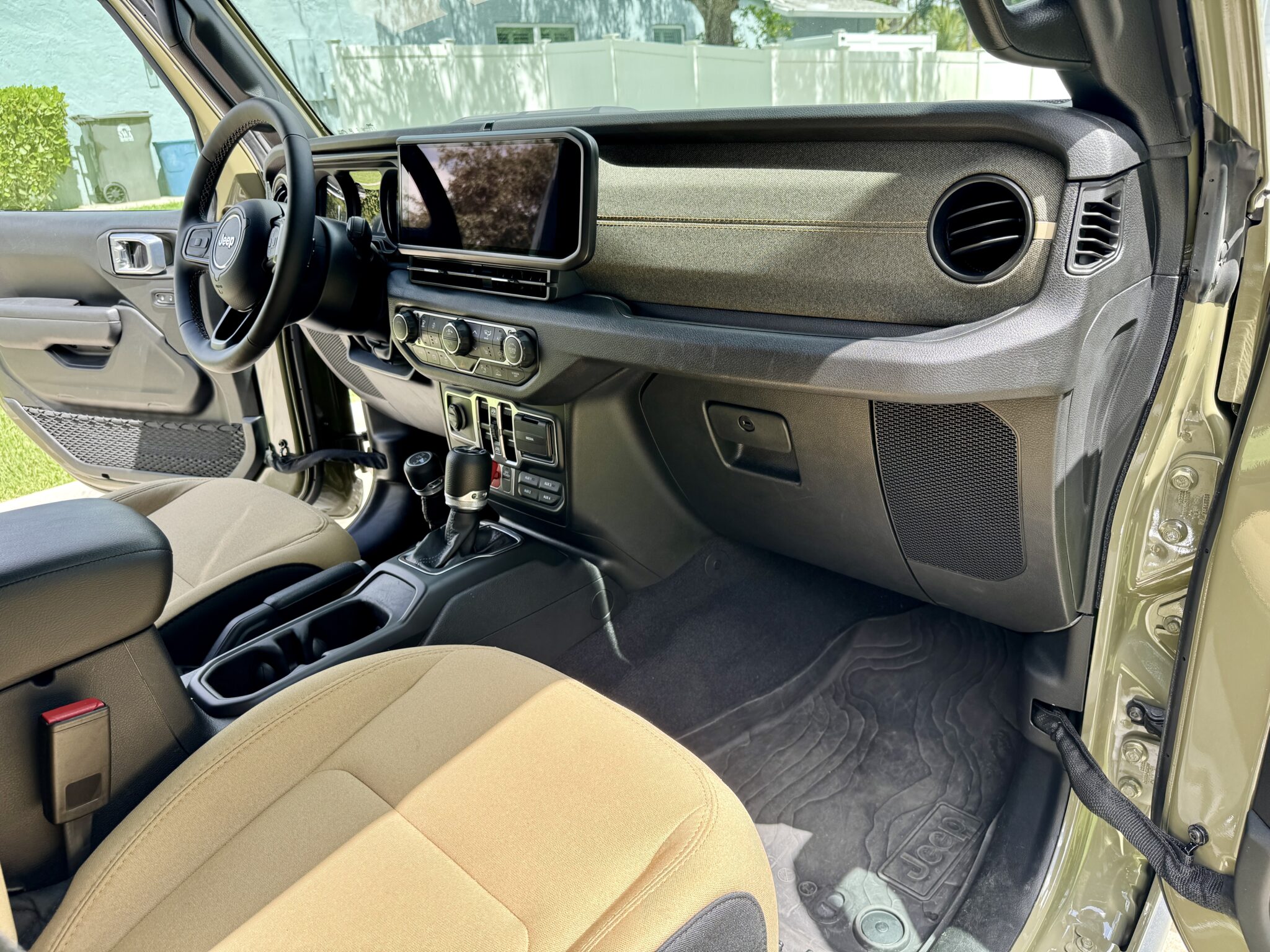 When you step inside the cabin, it’s just what you’d expect from a modern Jeep Wrangler, but with a noticeable touch of refinement. The materials used to finish the interior are a huge improvement over the older models, giving it a much more upscale feel.