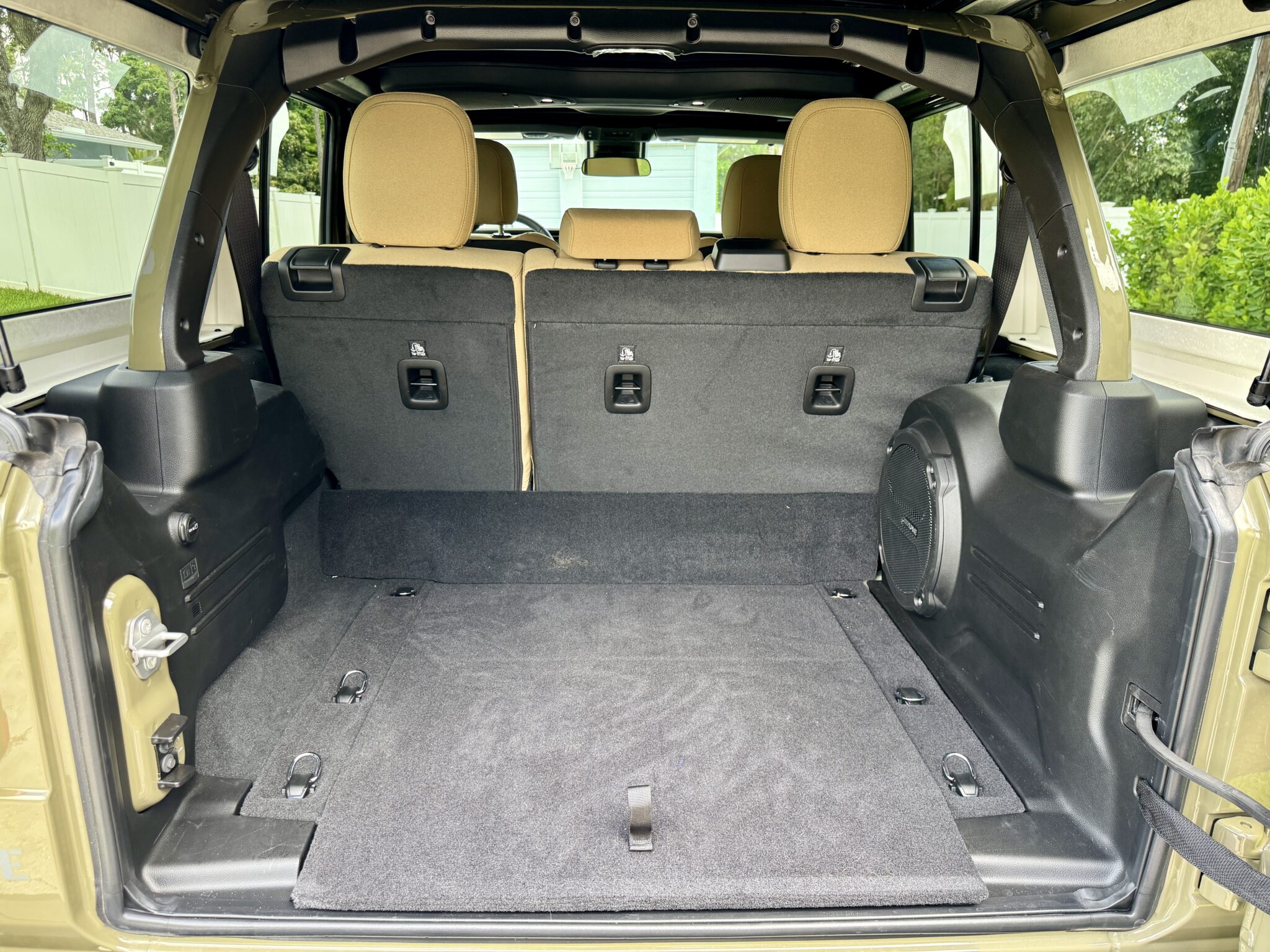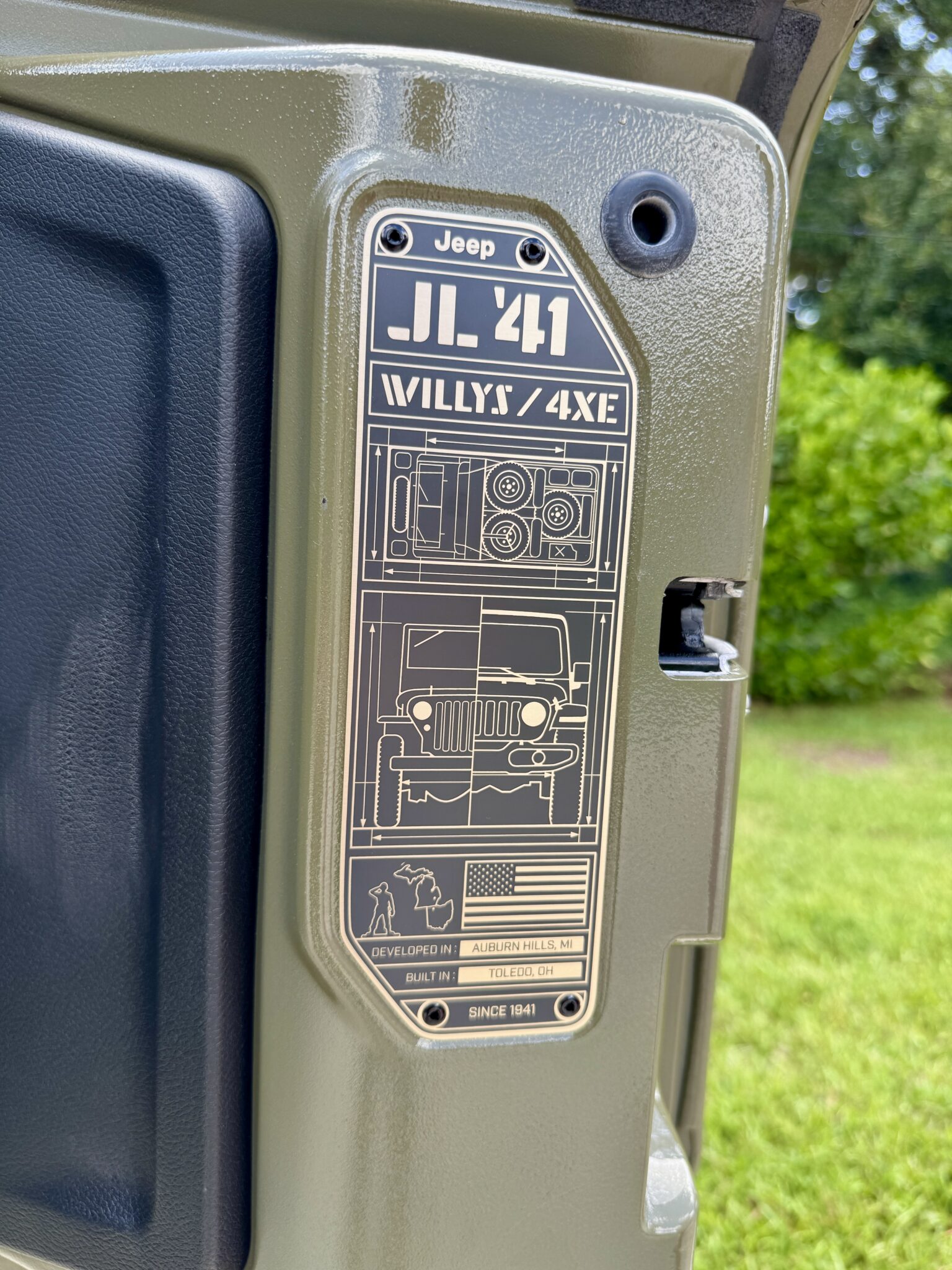 On the inside of the tailgate, there’s a special plaque that’s like a little piece of American history. It’s basically a blueprint that tells a story, and it’s a great touch that makes the ’41 Edition really special. This small detail is a great example of how Jeep likes to hide clever little design elements in their vehicles, and it’s definitely something that sets them apart. The plaque is more than just a nice design feature, it’s also a way to connect with the past and appreciate the history of America.