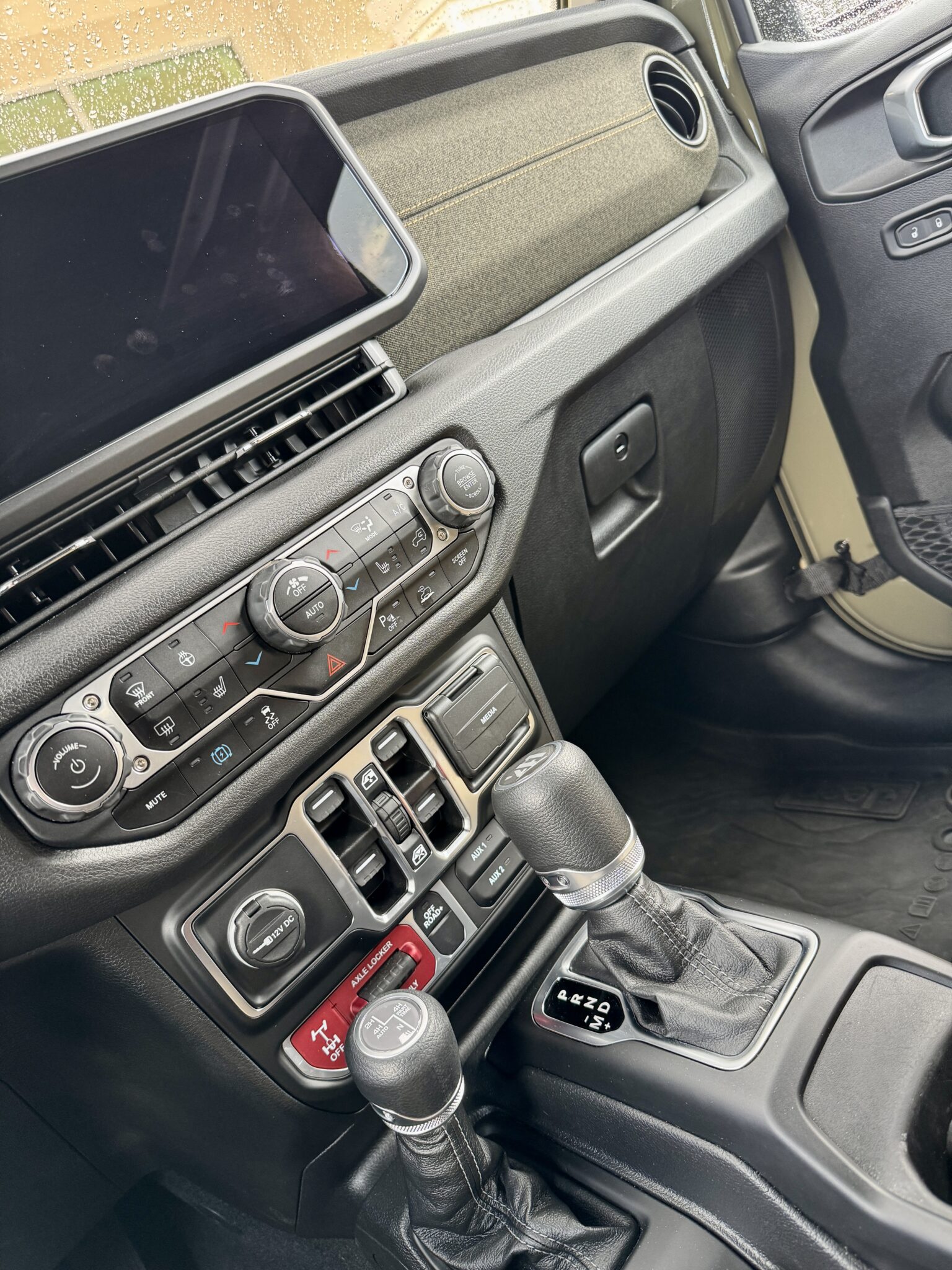 The main thing that stands out in the new Wrangler is the huge touchscreen, which makes the entertainment and off-road systems feel really modern. Plus, if you’re like me and you like being able to feel buttons and controls, you’ll love all the switches and knobs they’ve still included. I love the level switch flip set up — it’s like sitting in a real command center, with everything at your fingertips.
