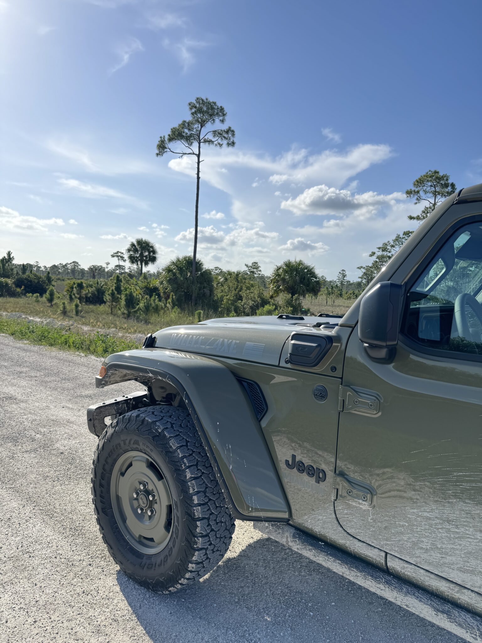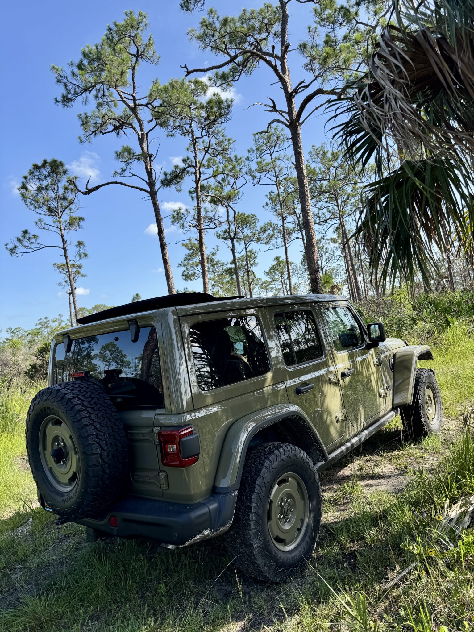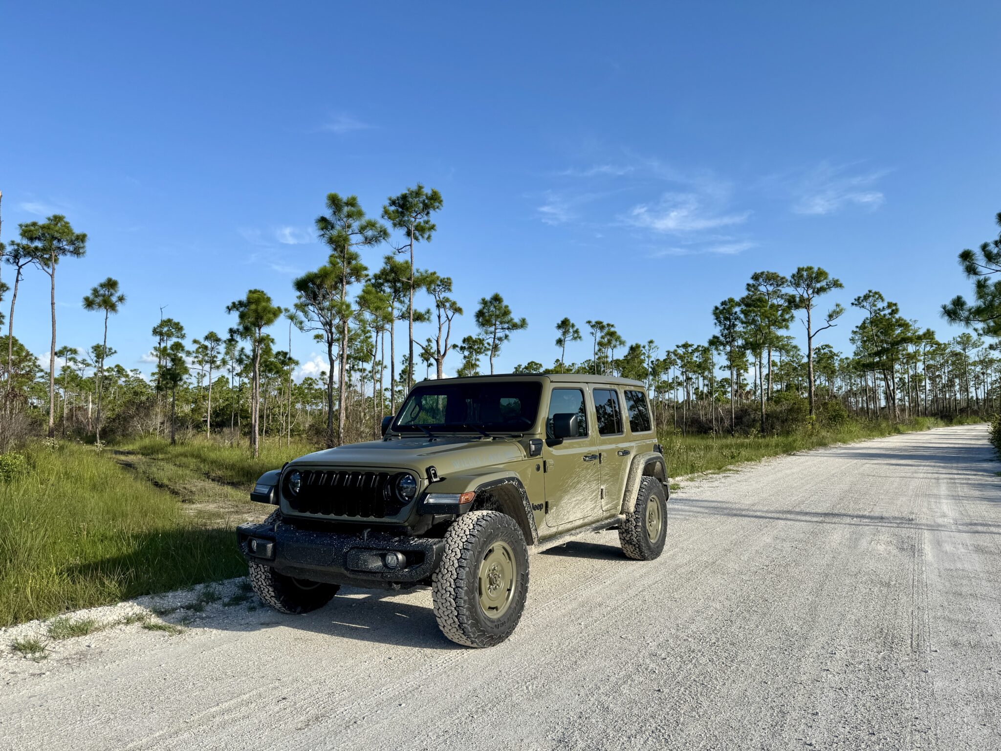I wanted to capture the Wrangler in its natural habitat, so I took some photos in a parking lot, hah. But that wasn’t enough. I had to get it dirty, just to, you know, test it out. I took it off-road in the woods of South Florida, and it handled like a dream. The 4xe powertrain isn’t just about saving fuel, it’s also great for crawling over rough terrain like roots and loose dirt. The instant electric torque, 33″ tires and Willys suspension made it feel effortless. And when I wanted to sneak up on some wildlife to get a great photo, the electric only mode was perfect – it was so quiet, I didn’t startle them at all.