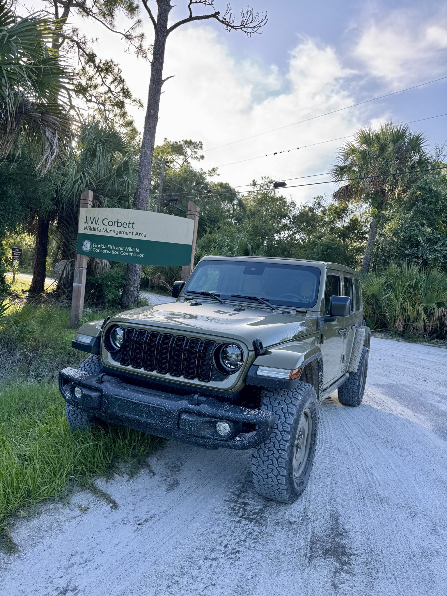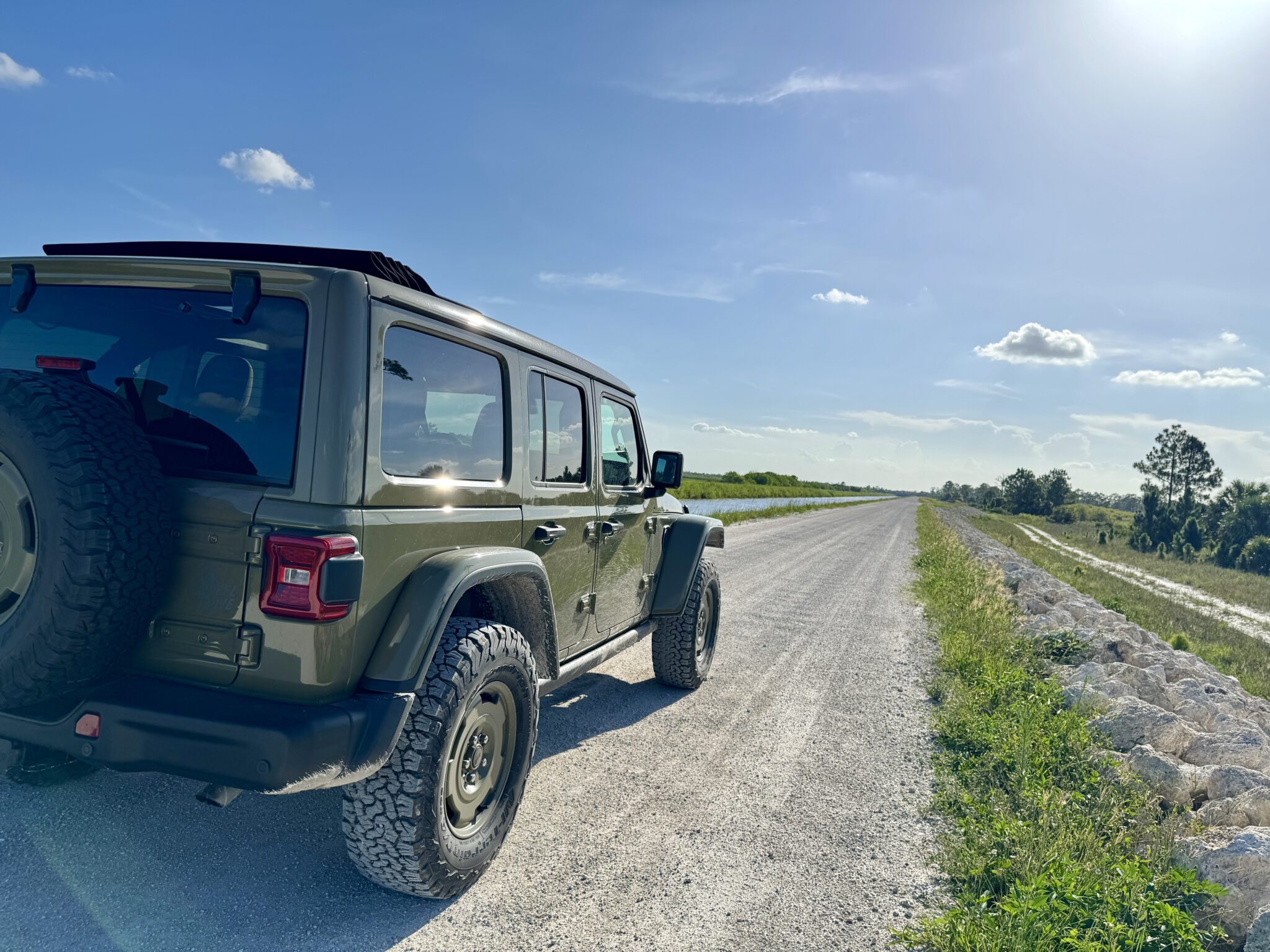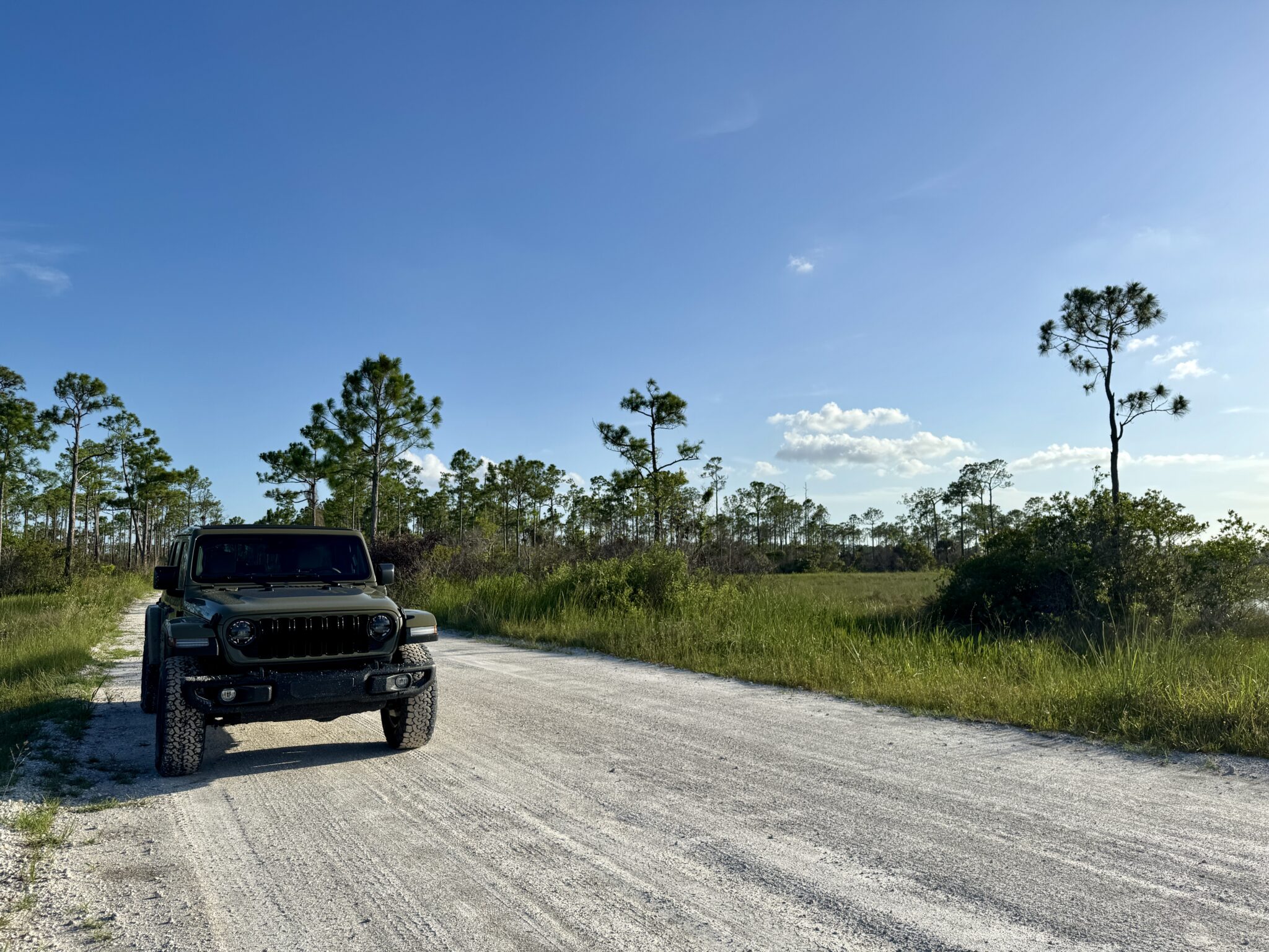I wanted to capture the Wrangler in its natural habitat, so I took some photos in a parking lot, hah. But that wasn’t enough. I had to get it dirty, just to, you know, test it out. I took it off-road in the woods of South Florida, and it handled like a dream. The 4xe powertrain isn’t just about saving fuel, it’s also great for crawling over rough terrain like roots and loose dirt. The instant electric torque, 33″ tires and Willys suspension made it feel effortless. And when I wanted to sneak up on some wildlife to get a great photo, the electric only mode was perfect – it was so quiet, I didn’t startle them at all.